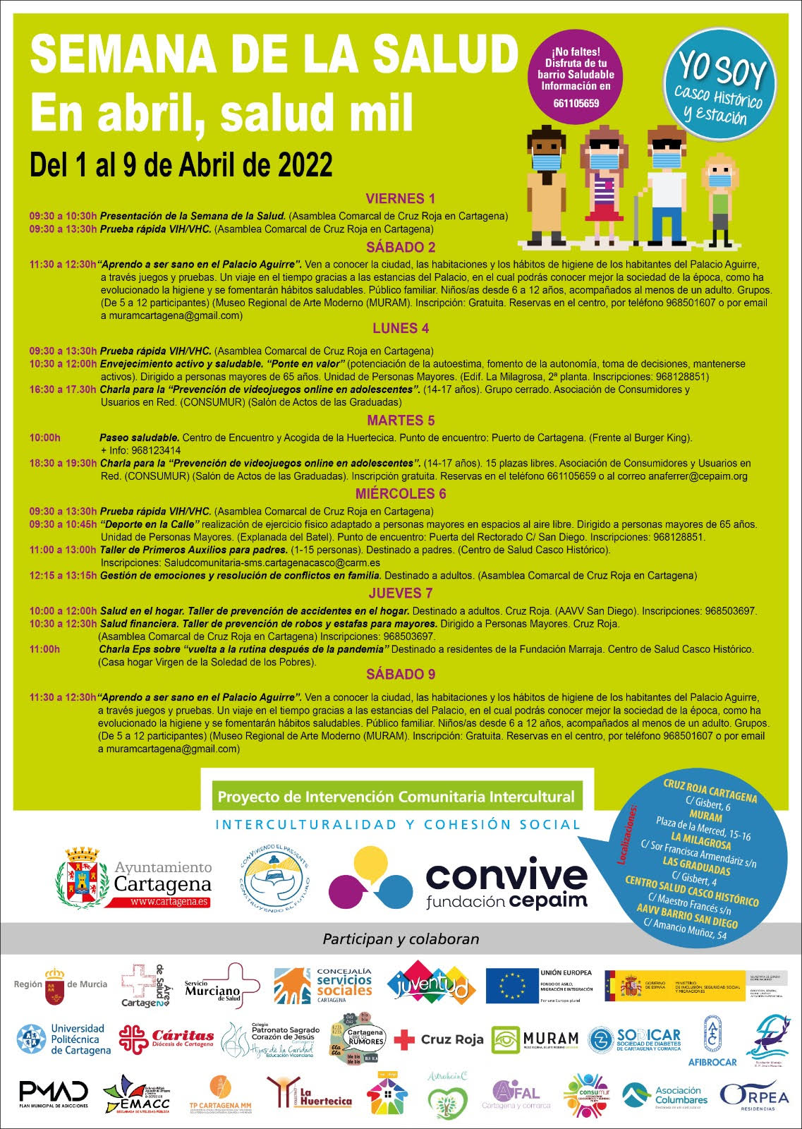 Paseos saludables, pruebas de VIH y charlas formarán parte de la Semana de la Salud, que se celebra del 1 al 9 de abril. Durante la semana también se organizarán actividades deportivas para concienciar sobre el valor de cuidar la salud.
