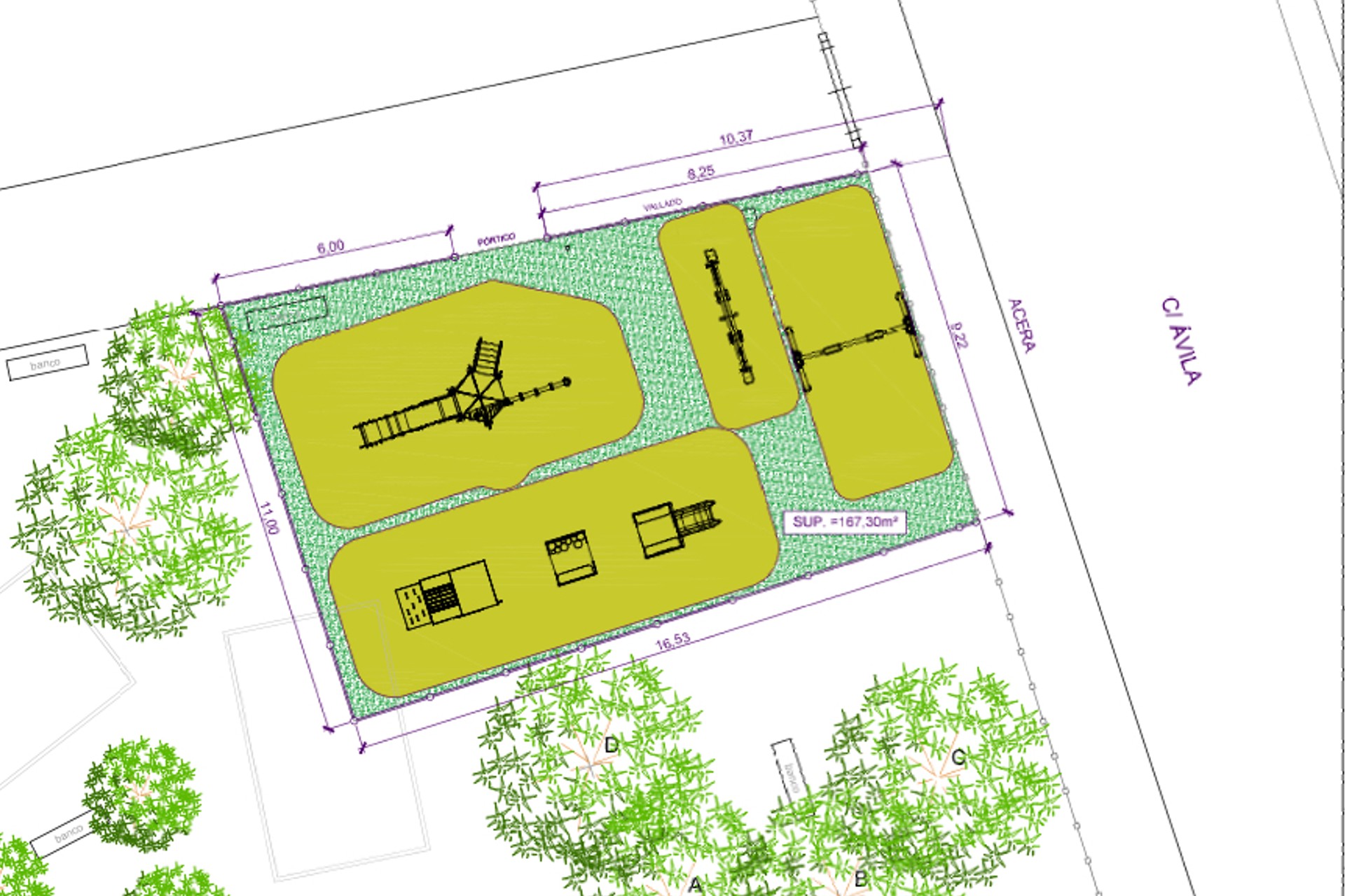 El proyecto, que está ya en proceso de contratación, tiene un importe de 48.387,90 euros y un plazo de ejecución de dos meses desde el momento de su adjudicación. Las obras incluyen la instalación de pavimento continuo de césped sobre solera, suministro e instalación de nuevos juegos infantiles, entre los que destacan la locomotora pandilla con dos vagones, un columpio doble pandilla, la nave espacial Guau, pórtico de entrada y vallado shambala con árbol.
