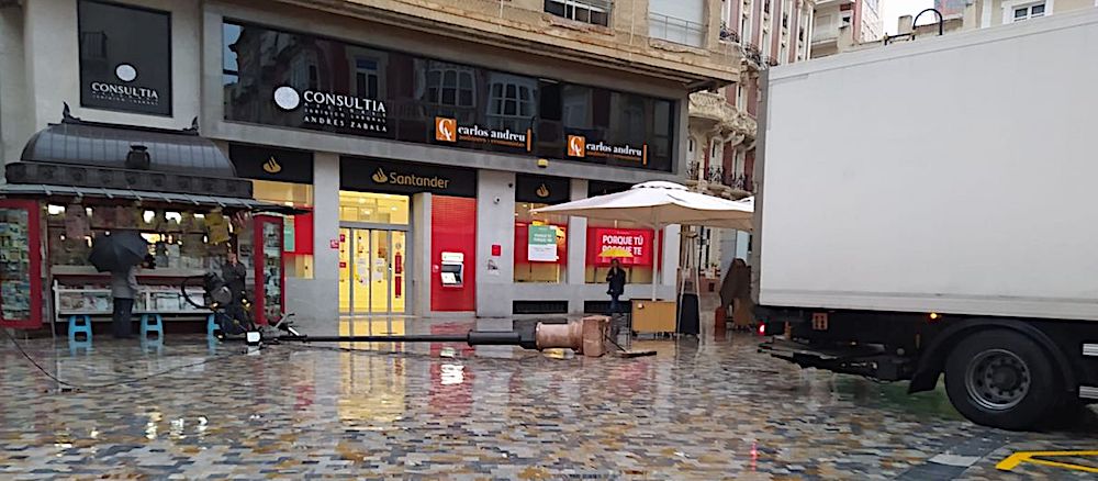 Personal de la empresa concesionaria del servicio municipal de mantenimiento de alumbrado, ha procedido a primera hora de este martes a la retirada de una luminaria en la plaza de San Sebastián, del casco urbano, que había sido derribada por un camión de reparto de gran tonelaje mientras realizaba una maniobra de marcha atrás.