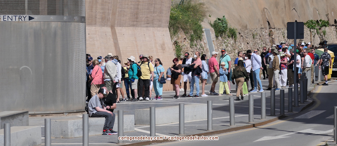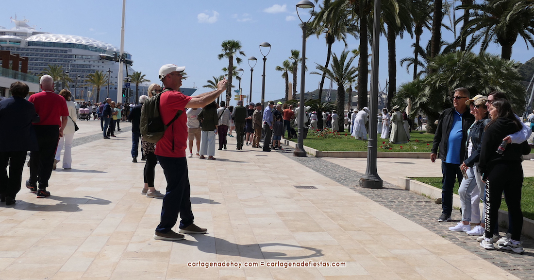 Hoy es el ‘día del trabajo, de la madre, de la risa…’ y bien podría ser la jornada del crucerista en Cartagena, pues han sido tres los grandes buques (entre ellos el más grande del mundo) que han atracado en la dársena, con unas diez mil personas a bordo, que al bajar a tierra se han encontrado con el recibimiento de Carthagineses y Romanos, de los modernistas disfrutando de un picnic en Héroes de Cavite y de la manifestación laboral del 1M, además de las joyas del patrimonio histórico de la ciudad, observándose las colas que ellos mismo han generado para acceder a contemplarlas. La ciudad tiene previsto recibir durante mayo una media diaria superior a mil cruceristas.
