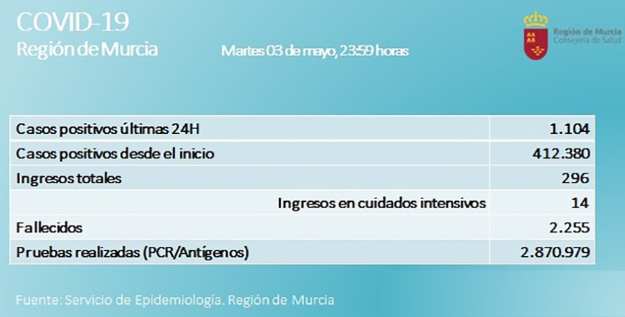 El complejo formado por esta instalación y la de Santa Lucía cuenta actualmente con 100 enfermos de coronavirus y 3 en UCI. La Región registró ayer 1.104 nuevos positivos y un fallecimiento.