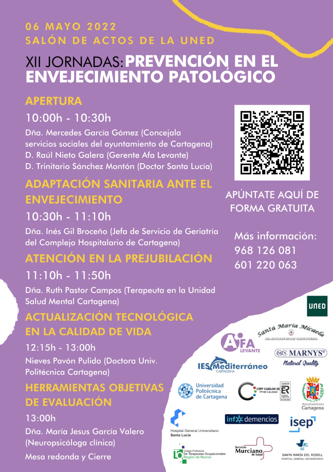Mañana, 6 de mayo, tendrá lugar la celebración de las XII Jornadas de Prevención en el Envejecimiento Patológico organizadas por la asociación AFA (Asociación de familiares de personas con enfermedades neurodegenerativas y prevención de envejecimiento patológico). Este evento forma parte de la programación anual de esta asociación que, durante más de 27 años de trabajo, sigue dando información y actualización sobre la realidad de estas enfermedades. Esta jornada tendrá lugar en el salón de actos de la UNED.