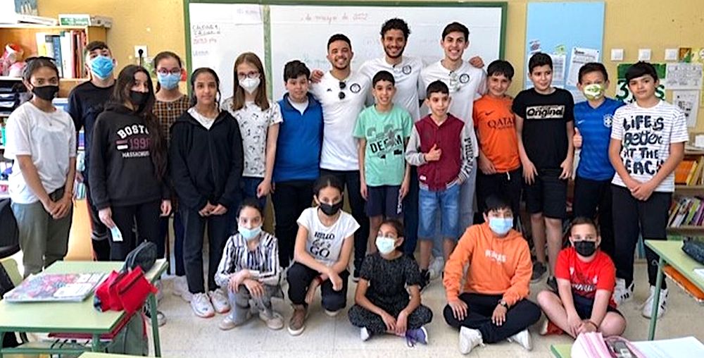 Los alumnos del CEIP San Antonio Abad disfrutaron esta semana de una jornada con Lucao, Meira y Motta, jugadores del Jimbee Cartagena, equipo de División de Honor. Pasaron por las aulas de sexto de primaria con la consiguiente sorpresa para los alumnos, que los recibieron con entusiasmo.