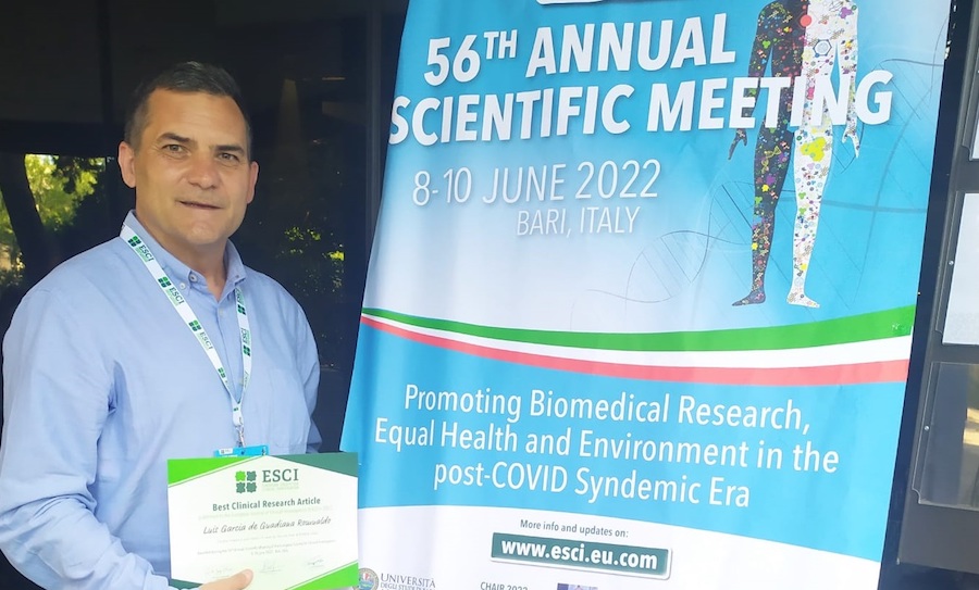 Durante el reciente Congreso de la Sociedad Europea de Investigación Clínica (ESCI), celebrado en Bari del 8 al 10 de junio, el artículo “Cardiac troponin and COVID-19 severity: Results from BIOCOVID study”, cuyo primer autor es el Dr. Luis García de Guadiana Romualdo, especialista del Servicio de Análisis Clínicos del Hospital Universitario Santa Lucía (Cartagena) y miembro de la Comisión de Magnitudes Biológicas relacionadas con la Urgencia Médica de la SEQCML, recibió el premio al mejor artículo de investigación clínica publicado durante el año 2021 en la revista European Journal of Clinical Investigation.