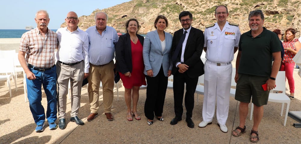 Una representación de la asociación ‘Cartagena siempre’, encabezada por su presidente, Fulgencio Sevilla, asistió ayer al acto de presentación de los proyectos del Ayuntamiento de Cartagena y de la Autoridad Portuaria para El Espalmador.