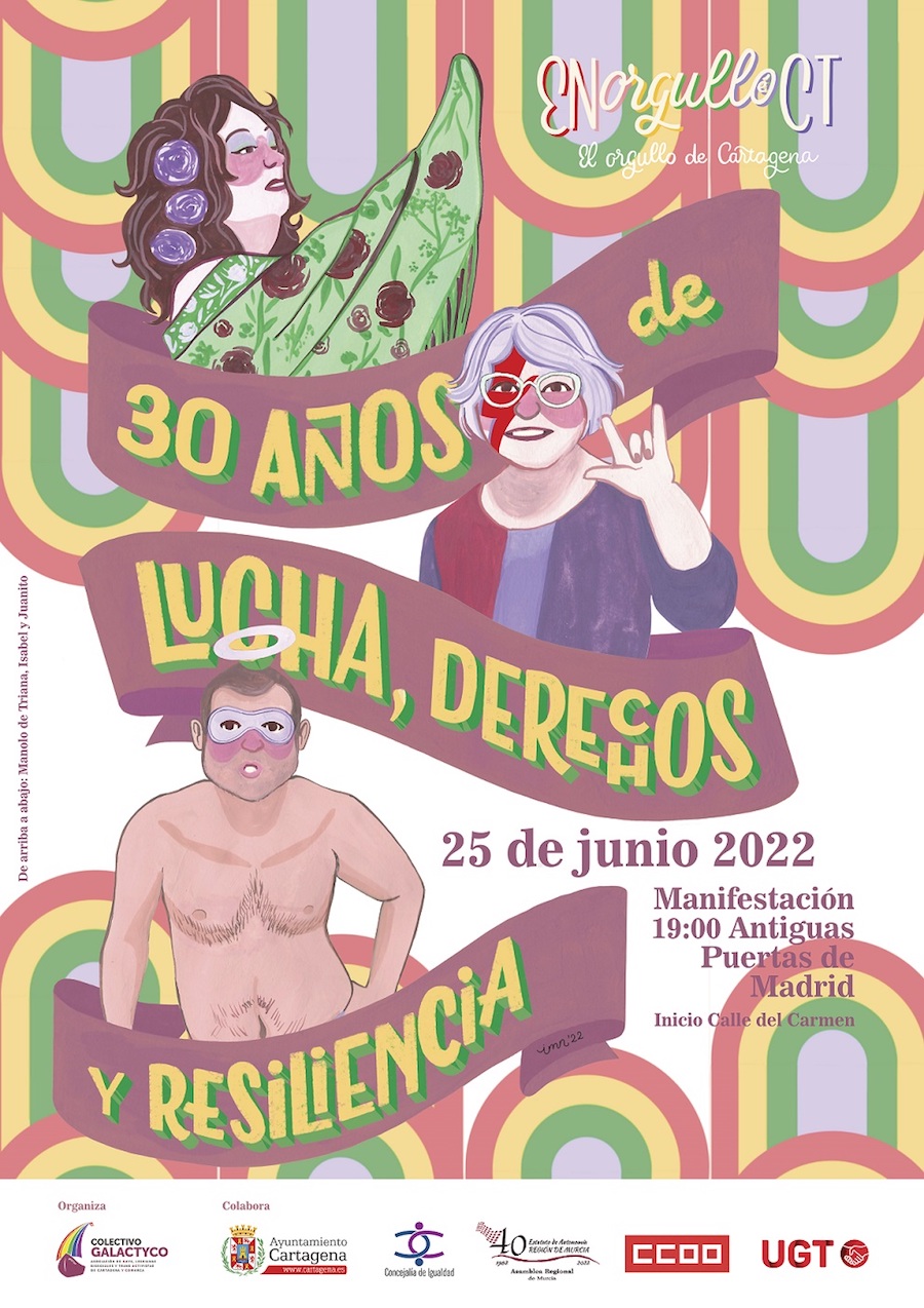 La Asociación 'Colectivo Galáctyco' llega al final de la programación del programa del Orgullo LGTBI+ de Cartagena, pionero en la Región y en el sureste español. Diez días de actividades que acaban este sábado con el acto central de la tradicional manifestacion que recorrerá las calles de Cartagena bajo el lema '30 años de lucha, derechos y resiliencia', como conmemoración de los treinta años de activismo que cumple la FELGTBI+ y de la que Galáctyco es miembro desde el año 2008.