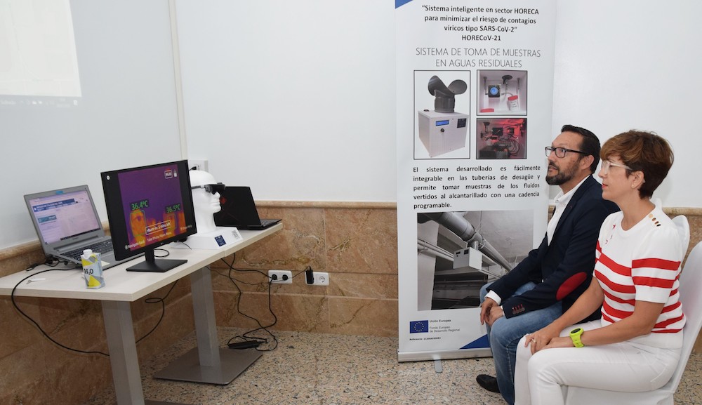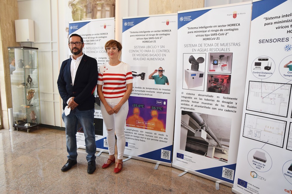 El hotel más seguro de Europa en cuanto a monitorización, prevención y disminución del riesgo de contagios víricos tipo SARS-CoV-2. Así definen los responsables del proyecto HORECoV-21 al Sercotel Alfonso XIII de Cartagena, donde han instalado y testado cuatro sistemas tecnológicos anticovid que han desarrollado. Investigadores de la UPCT y empresas tecnológicas monitorizan el aire, el agua residual, la temperatura corporal y la distancia social en el hotel