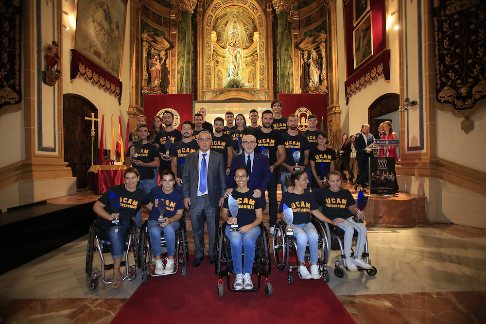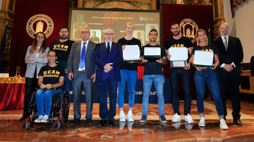 Se destacó la trayectoria de algunos de los deportistas y técnicos más destacados de los 25 años del deporte UCAM, como Antonio Peñalver (plata en Barcelona 92 y actualmente profesor de la Facultad de Deporte). Y, además, se homenajeó a los seis deportistas de la Universidad con mejor palmarés olímpico y paralímpico: Teresa Perales (natación, 27 medallas), Saúl Craviotto y David Cal (piragüismo, cinco medallas), Lydia Valentín (halterofilia, tres medallas), Gerard Descarrega (atletismo - dos medallas) y Laura Gil (baloncesto - una medalla). Entre todos suman catorce medallas olímpicas y 29 paralímpicas. El presidente de la UCAM pidió un aplauso para Mireia Belmonte que no pudo acudir a la gala y que habría sido parte de esta foto con sus cuatro medallas olímpicas.