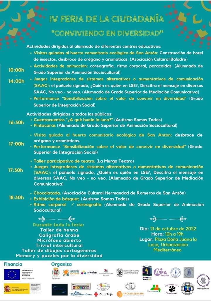 La cuarta edición, bajo el lema 'Conviviendo en diversidad', comenzará a las diez en la plaza Doa Juana la Loca y abarcará a colectivos de San Antón y de Urbanización Mediterráneo.