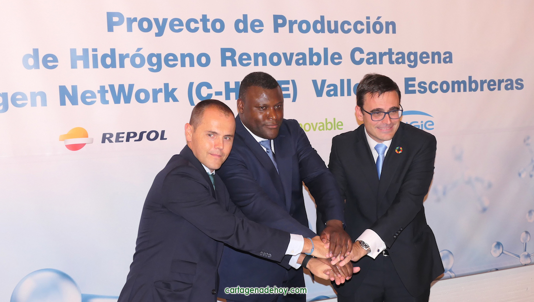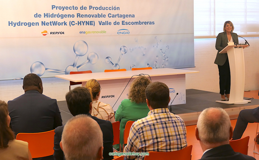 Un consorcio liderado por Repsol y que completan Enagás y Engie han rubricado su implicación en un macroproyecto mdioambiental que apuesta por el hidrógeno renovable y que levantará en el Valle de Escombreras la primera planta de producción. Requerirá una inversión de 215 millones de euros y generará más de mil puestos de trabajo. Comenzará con la construcción de un electrolizador de 100MW que está previsto que alcance los 1,9 gigawatios en 2030, pero que cinco años antes ya habrá evitado la emisión a la atmósfera de más de 167.000 toneladas anuales de CO2 y contribuirá a la disminución del consumo de gas natural. Las autoridades anuncian “una alfombra roja” burocrática para facilitar la consecución de este gran reto. GALERÍA DE FOTOS (pinchar aquí)