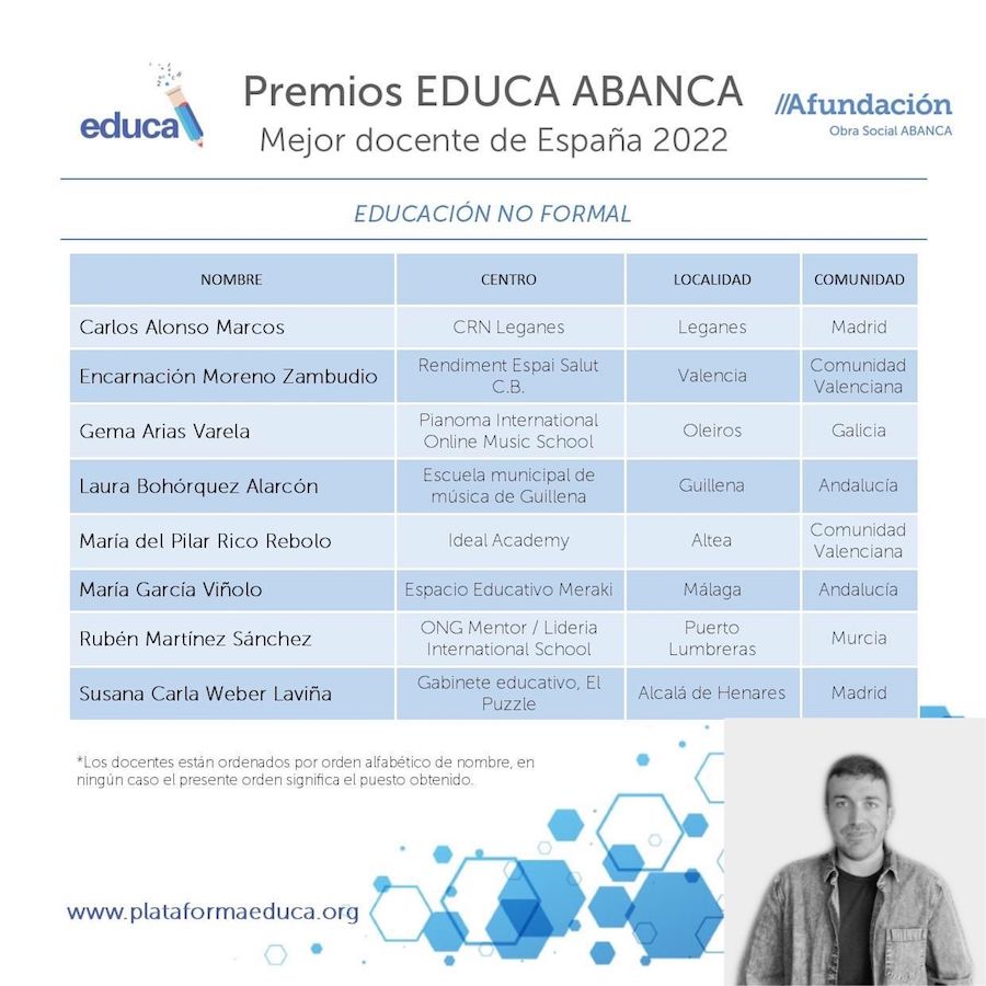 Los premios Educa Abanca son considerados como ‘los goyas’ de la educación, siendo los más prestigiosos en educación de nuestro país. Se caracterizan por que son los alumnos los que nominan a los profesores.