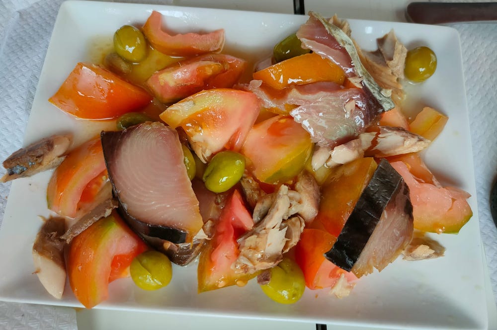 - Ensalada de bonito y tomate partió de la Finca de San Félix con aceitunas caseras