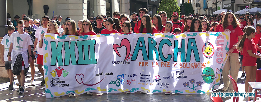 Cientos de personas han participado esta mañana en vigésimo tercera marcha organizada por la paz y la solidaridad por el colegio de ‘La Sagrada Familia’ de Cartagena.