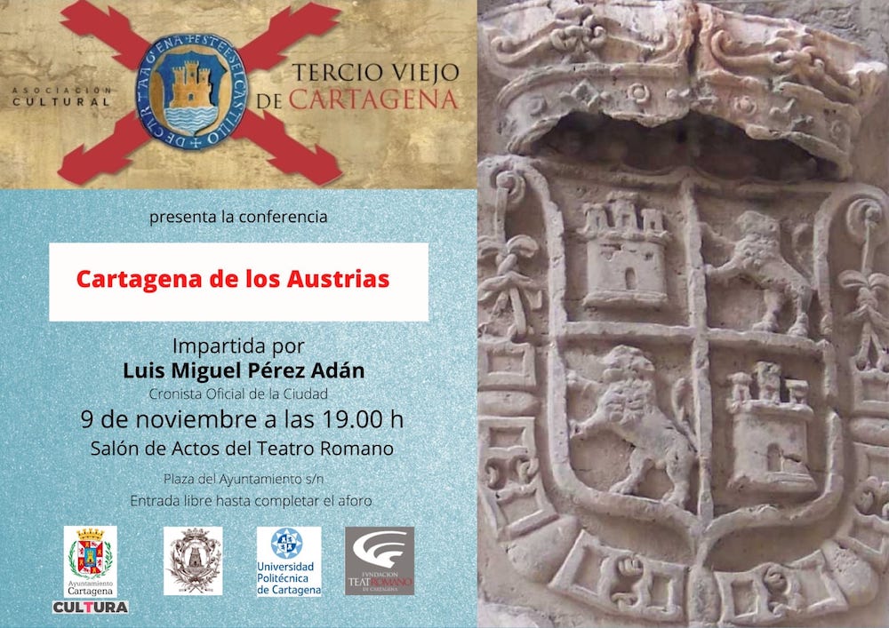De los aspectos más relevantes de este período con relación a nuestra localidad hablará Luis Miguel Pérez Adán en su conferencia “Cartagena de los Austrias”. La conferencia, organizada por la Asociación Tercio Viejo de Cartagena, tendrá lugar el día 9 de noviembre a las 19.00 horas en el Salón de Actos del Teatro Romano. La entrada será libre hasta completar el aforo.