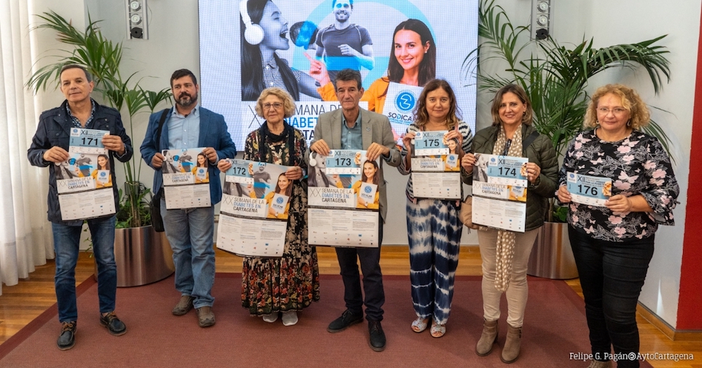 Conferencias impartidas por expertos y profesionales sanitarios, una marcha solidaria, mesas informativas en el Hospital Santa Lucía, retinografías, la lectura del manifiesto y una comida de convivencia son las actividades que se van a desarrollar del 14 al 19 de noviembre por el Día Mundial de la Diabetes, el 14 de noviembre. Organizado por la Sociedad de Diabetes de Cartagena y Comarca, SODICAR, con la colaboración del Ayuntamiento de Cartagena.