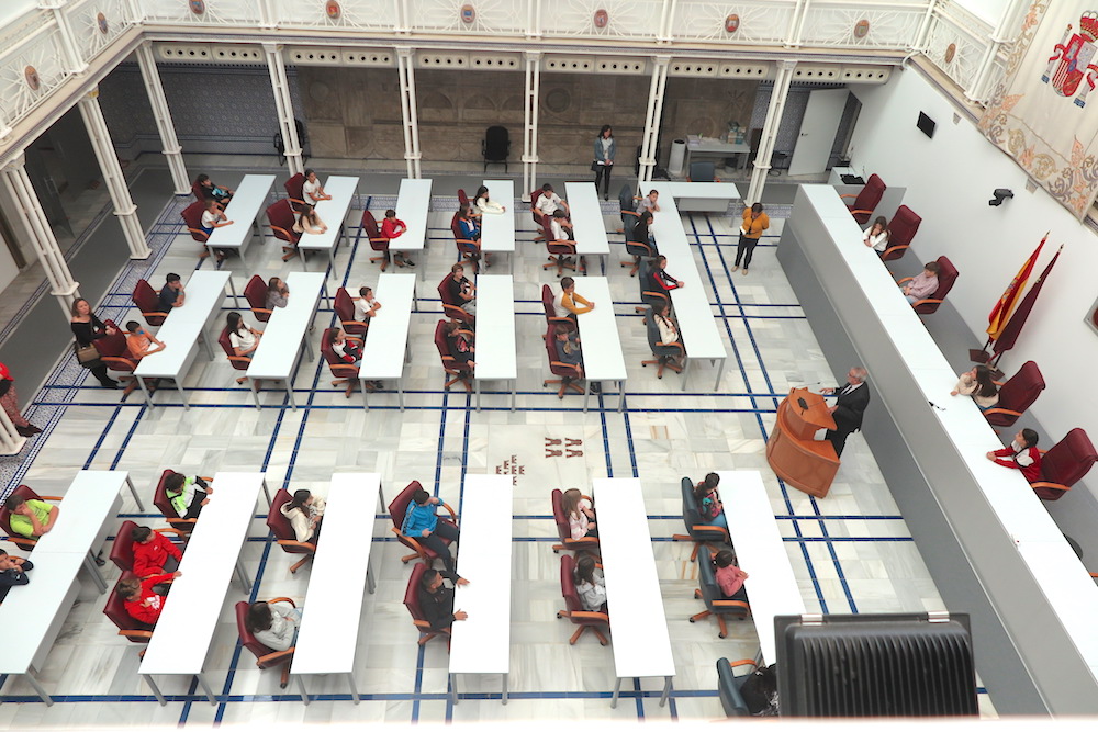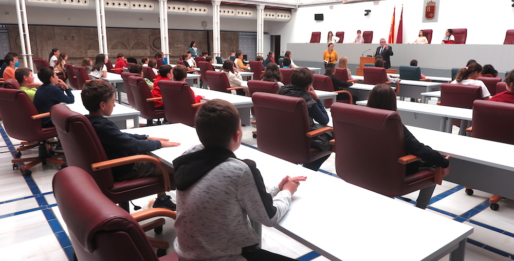 Los alumnos de este colegio cartagenero han abierto la etapa de recuperación de las visitas a la Asamblea Regional, abarca a 208 centros regionales y que se llevará a cabo hasta junio del próximo año.