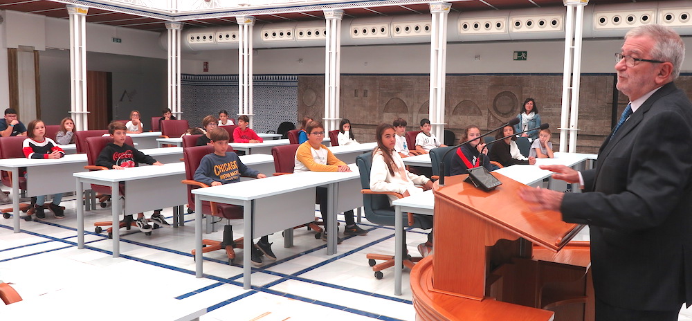 El presidente de la Asamblea Regional, Alberto Castillo, ha dado la bienvenida a los alumnos de primaria del Colegio Público de Cartagena “Vicente Ros”, que han sido los primeros en retomar el XXXII programa de divulgación educativa "Conoce la Asamblea Regional, Tu Parlamento" tras más de dos años y medio de interrupción por la pandemia.