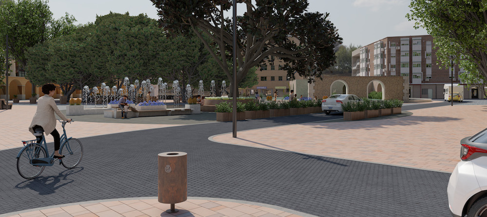 “El cambio fundamental que los ciudadanos van a apreciar es la generación de una plaza diáfana y sin obstáculos, que va a tener al peatón como auténtico protagonista”, ha explicado la alcaldesa. Arroyo ha informado de que “los más de 9.000 metros cuadrados en los que vamos a intervenir, quedarán al mismo nivel. Desaparecen bordillos, soterraremos contenedores y concentraremos los puntos de luz en 10 báculos”. Se instalará una fuente de suelo junto al ficus de la actual rotonda, bancos curvos y nuevas papeleras.