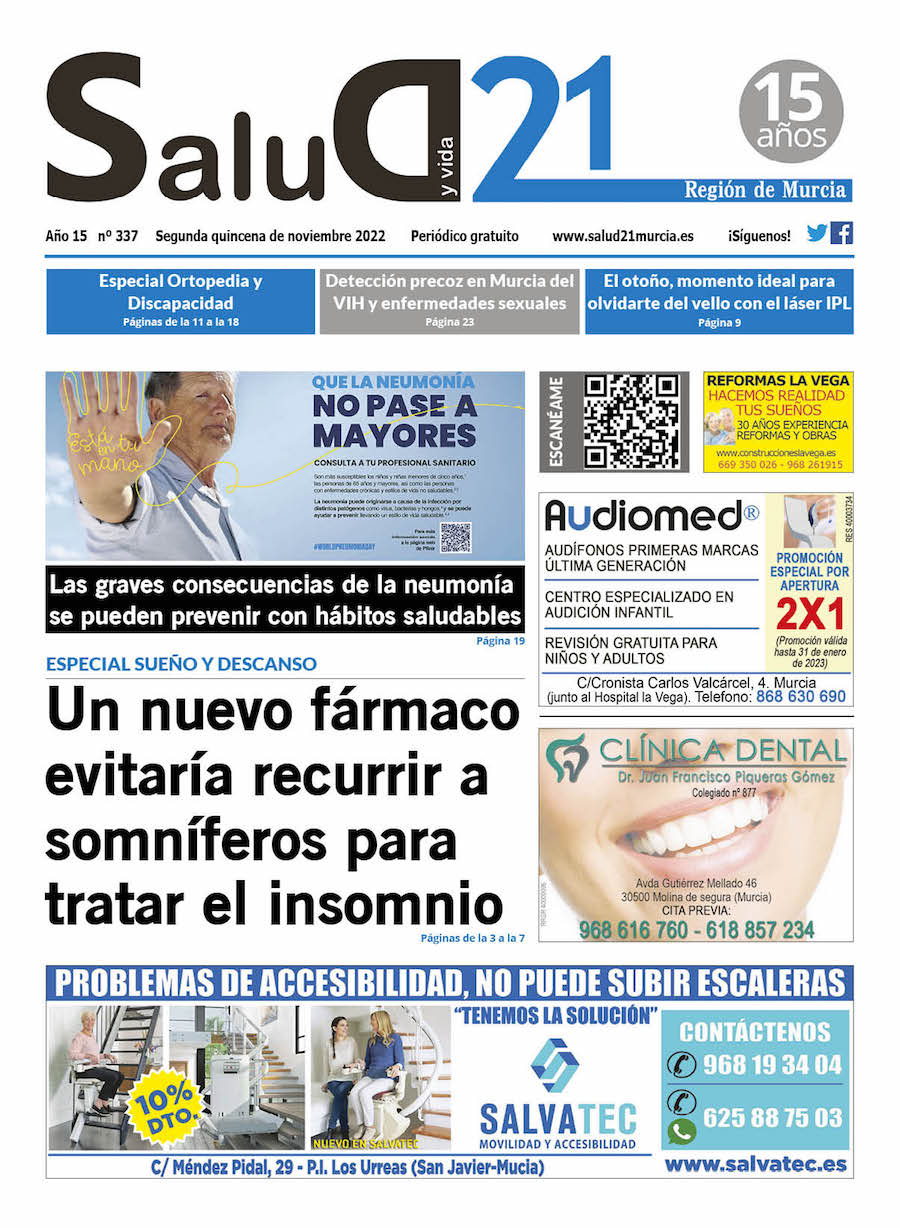 El periódico quincenal que aborda temas de salud en la Región de Murcia lleva al número 337 y entre los temas que ofrece figura un artículo sobre el nuevo fármaco que podría evitar recurrir a somníferos para tratar el insomnio.