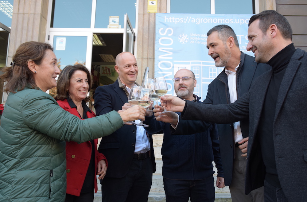 El padrino de esta añada ha sido el presidente del Consejo Social de la UPCT, Emilio Restoy, y el nuevo director de la Escuela de Agrónomos, José Miguel Molina, ha agradecido a su antecesora el trabajo desplegado en el proyecto del vino Tomás Ferro, “posibilitando una formación práctica complementaria a una treintena de alumnos de la ETSIA”.