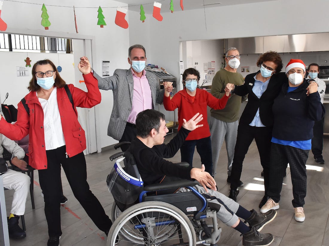 Durante el desayuno, sonó la canción compuesta por uno de los usuarios,. Una trabajadora del centro leyó también, un cuento escrito para estas fechas, por otro gran artista, que también convive en este hogar repleto de ilusión, alegría y fraternidad, un sentimiento expresado en este cuento, escrito por alguien con mucha sensibilidad y que recogía lo siguiente: