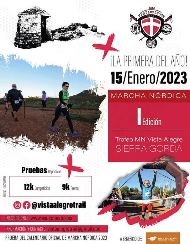 La quinta edición de CXM Vista Alegr-Sierra Gorda se celebra este domingo con media maratón, cross y senderismo. Es novedad la marcha nórdica. Los beneficios obtenidos irán destinados al Banco de Alimentos de la Región de Murcia en Cartagena.