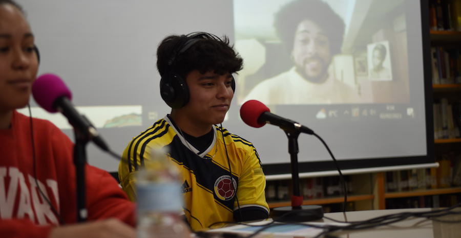 Durante el encuentro, se han reproducido en diferido algunas preguntas y creatividades de grupos de jóvenes participantes en el proyecto Orillas Mandarache, quien a pesar de encontrarse en periodo vacacional en su país de origen, Colombia, no han querido perder la oportunidad de interactuar con el autor.