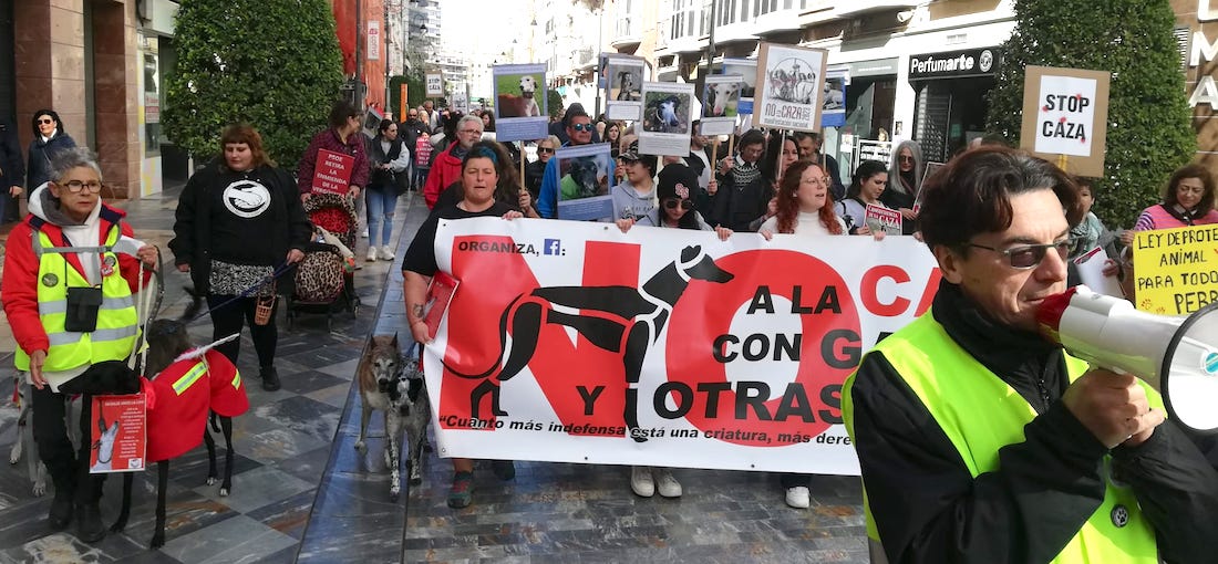 Cuarenta y cinco ciudades de España, incluida Cartagena, ha celebrado manifestaciones convocadas por la Plataforma NAC ('No a la caza'), que en esta ocasión han tenido como demanda principal que la Ley de Protección Animal incluya a todos los animales, como los perros usados en la caza, indicando que nuestro país es el único de Europa que lo sigue permitiendo.