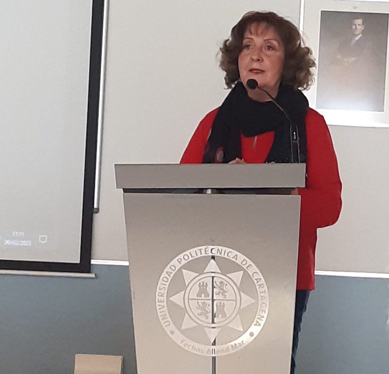 María Luisa Valderas Martínez, licenciada en Farmacia y profesora de música, ofreció la conferencia 'Música y memoria' en la Facultad de Ciencias de la Empresa, en la que habló de esos sonidos armoniosos como terapia en el campo de la recuperación de la memoria, especialmente en la población mayor, "se ha demostrado su gran valor y que favorece el proceso de modulación de los recuerdos emocionales", indica, apuntando que las letras de canciones, la primera canción que hemos bailado o con la que nos hemos enamorado desarrollan en el cerebro un mecanismo de acción que hace que nuestros recuerdos florezcan de nuevo y recordemos sensaciones o momentos olvidados.
