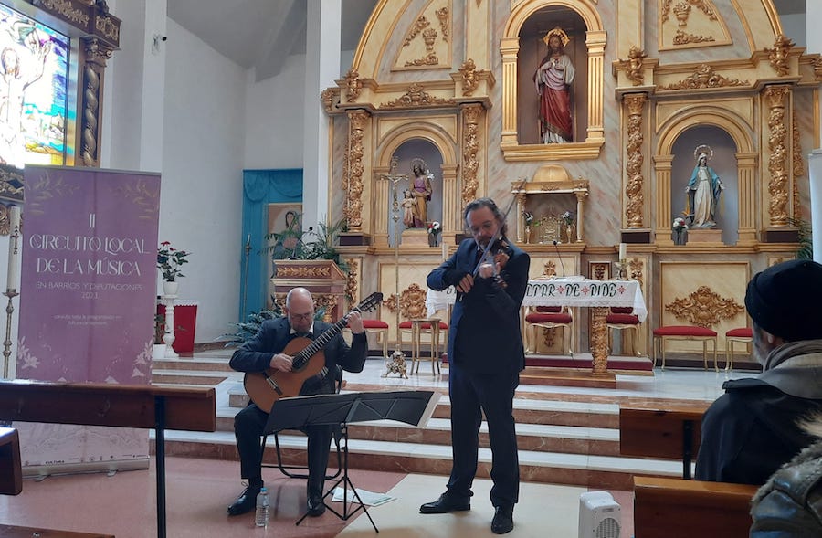 El dúo Jochen Brusch&Finn Svit ofreció un estupendo concierto el pasado domingo en la parroquia del Sagrado Corazón de Jesús dentro de la segunda edición de música en barrios y diputados que organiza la concejalía de Cultura. Este sábado será el guitarrista Augustin Wiedemann quien actúe en la iglesia de Nuestra Señora de los Dolores (17.30 horas).