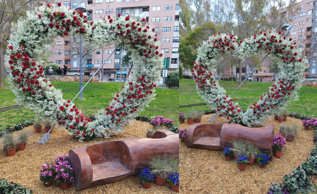 ¿Qué tal una fotografía dentro de un floreado corazón? Los interesados pueden tenerla si pasan por el parque de Los Juncos, donde el personal de la concejalía de Parques y Jardínes, que dirige el edil Juan Pedro Torralba, han creado este marco para las parejas con motivo de la celebración de San Valentín.