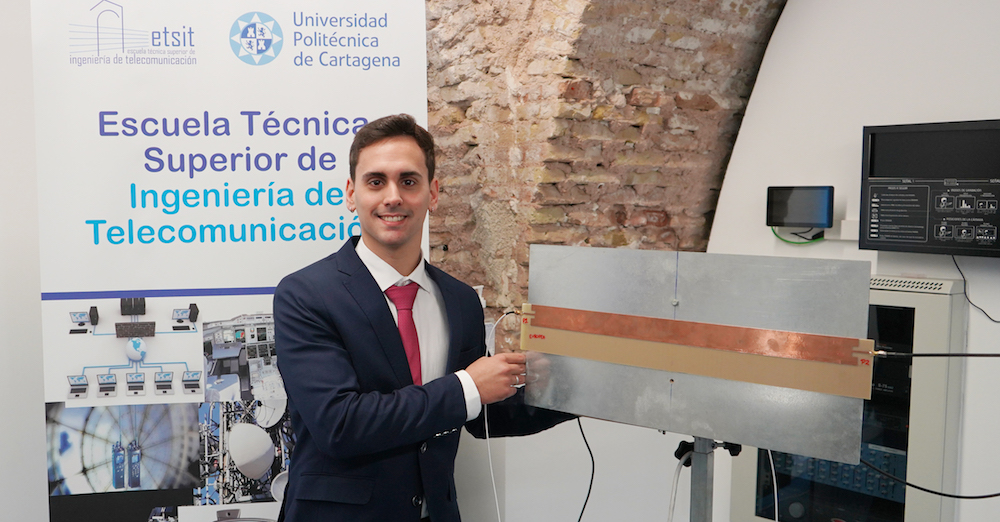El nuevo doctor en Tecnologías de la Información y las Comunicaciones por la UPCT ha contado con financiación de un proyecto de investigación para Indra y ha publicado novedades científicas en siete artículos en revistas internacionales de alto impacto durante su tesis doctoral, alcanzando un índice H de 6. “No es nada usual que alcance una cifra así un doctorando”, señalan sus directores, remarcando el valor de esta investigación multidisciplinar que ha combinado diversas áreas de conocimiento como el desarrollo de antenas, el uso de diferentes redes inalámbricas y el procesado de señales.