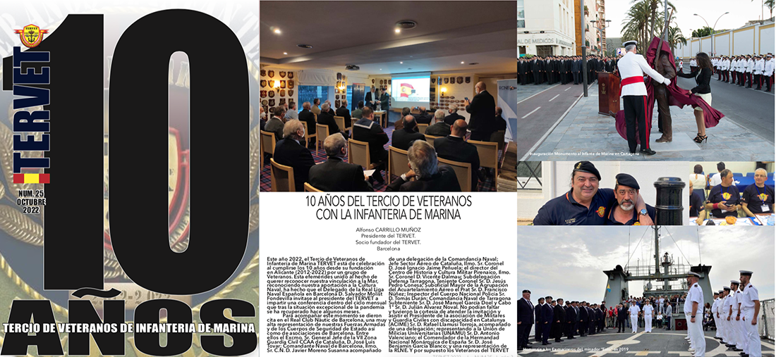 Tenemos el agrado de adjuntar el número 25 de la revista del Tercio de Veteranos de Infantería de Marina.  Celebramos con el X aniversario de nuestra asociación tan vinculada con Cartagena como lo esta también para muchas generaciones de Soldados de Reemplazo que pasaron por el CEIM en su período de instrucción guardando muchos y mu sentidos recuerdos de por vida. La cuidad y su gente forman parte de nuestras vidas siguiendo en la distancia sus noticias y su transformación así como la vida de la Infantería de Marina y la Armada que allí tienen sus bases.
