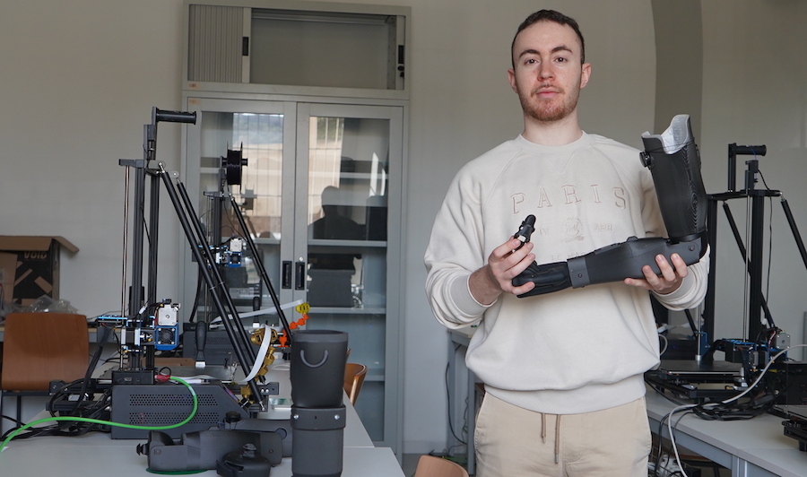 “Utilizamos técnicas de escaneado, diseño e impresión 3D para la creación de prótesis personalizadas para cada paciente”, subraya el joven ingeniero. La empresa, con sede en Espinardo, ofrece prótesis biónicas, con dispositivos electrónicos de última tecnología, prótesis personalizadas para las diferentes prácticas deportivas y otras soluciones protésicas, como dedos mecánicos que reproducen la funcionalidad y anatomía natural y que Alberto Martínez también diseñó y prototipó durante su TFG. “Fueron meses de mucho esfuerzo, pero también de emoción por ayudar a gente que lo necesita creando algo único”, comenta, reconociendo su “pasión por la ingeniería”.
