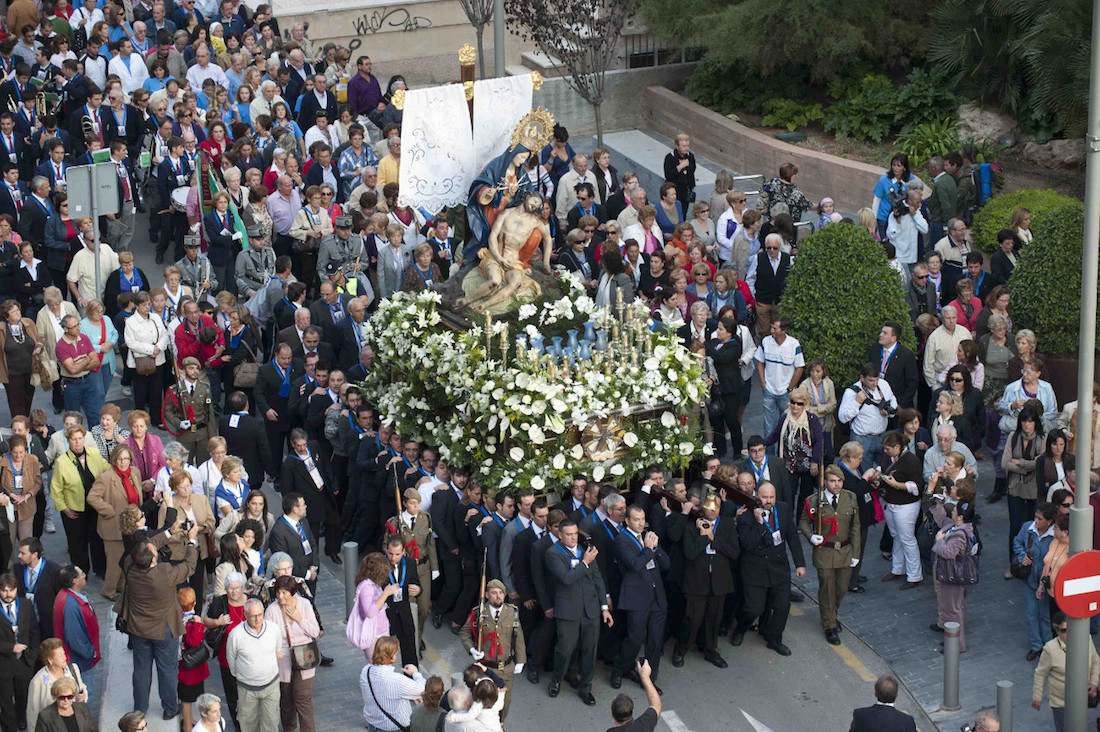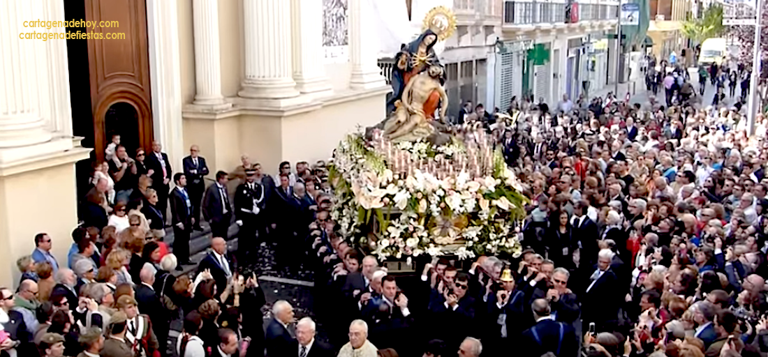 Francisco Irsino, hermano de la junta de gobierno del Hospital de la Caridad de Cartagena, viajó en 1722 a Nápoles con el encargo de adquirir una Virgen de los dolores. Sin embargo, la talla esculpida por Giacomo Colombo más bien se corresponde, según su iconografía, a la Virgen de la Piedad o de las Angustias. Pese a ello, mantiene su festividad en el Viernes de Dolores.