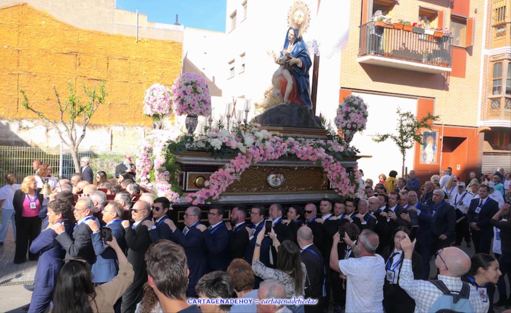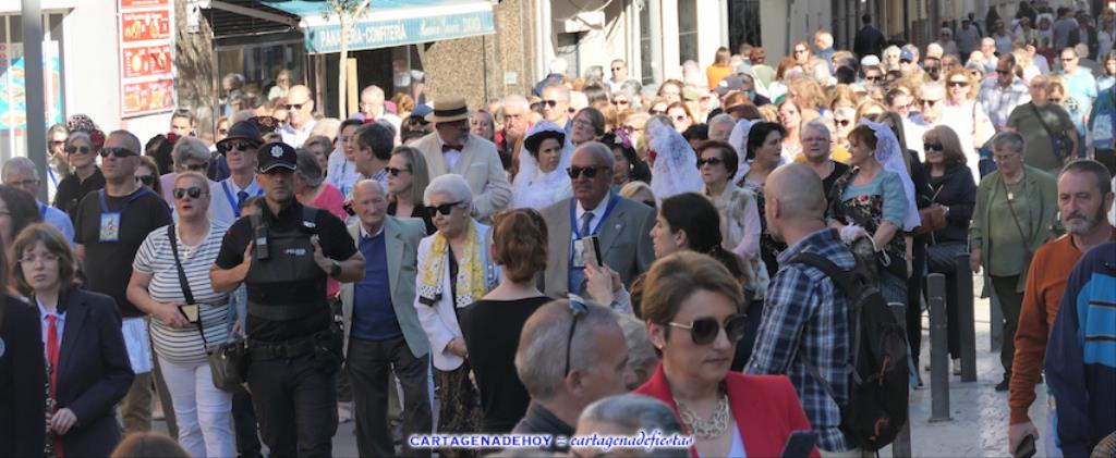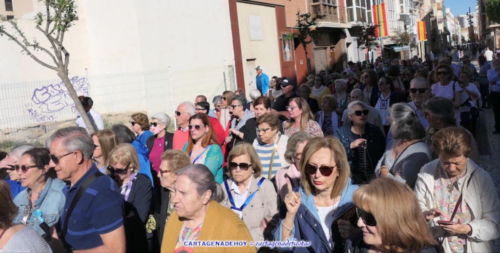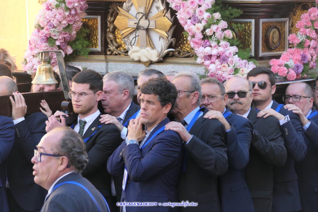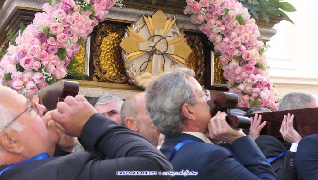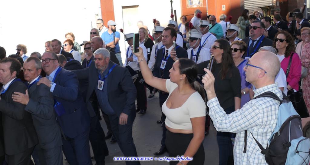 A las once horas es cuando ha llegado al cruce entre calles Aire y Cañón, enfilando el puerto, el mismo lugar donde fue coronado en 1923, donde a mediodía oficiará una eucaristía monseñor Lorca Planes. A este lugar ha llegado a las 11.27 horas, siendo recibida por el sonido de las bocinas de los barcos. El regreso a su basílica está previsto que se produzca sobre las dos y media de la tarde, poniendo el broche a su cuarta salida en el siglo XXI.
