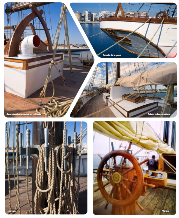 Durante su estancia en Cartagena, el público podrá subir a bordo gratuitamente, pasear por las cubiertas de madera de este imponente navío de 34 metros de eslora, 8 metros de manga y 415 m² de superficie velica, recorrer sus espacios y conocer su historia y cómo se desarrolla la vida a bordo.