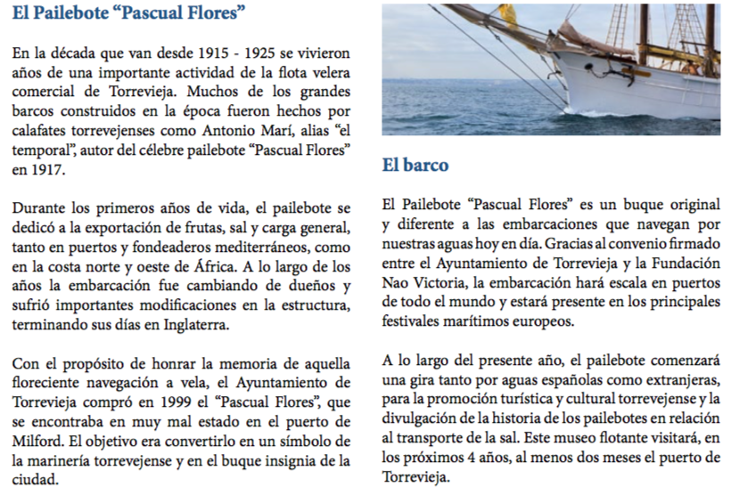 El Pascual Flores es un histórico navío, símbolo de los últimos veleros del Mediterráneo, construido en Torrevieja (Alicante) en 1917 para el próspero comercio de la sal con el Mediterráneo y África, que ha sido recientemente restaurado por la Fundación Nao Victoria. Su visita a Denia forma parte de la gira que está realizando este año por varios puertos de España y Europa, participando en importantes eventos culturales y Festivales Marítimos, como museo flotante de su historia y de la riqueza de nuestro patrimonio marítimo y la construcción naval torrevejense.