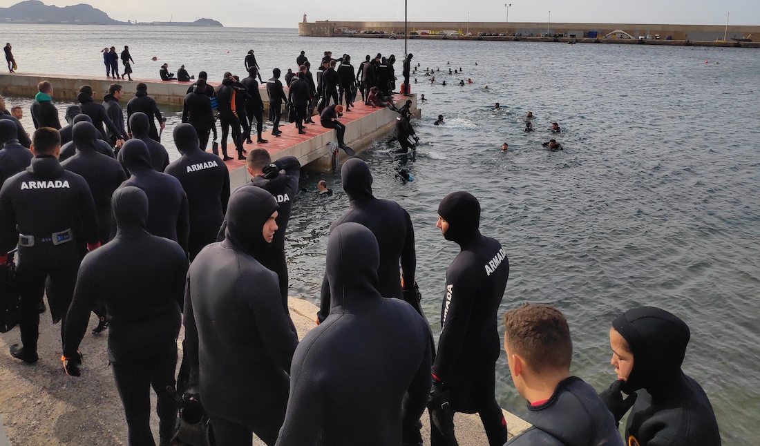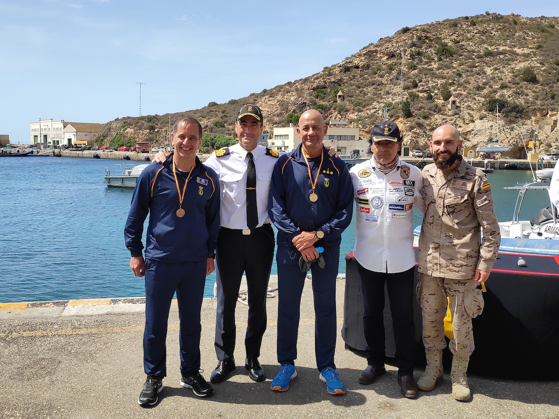 Organizada por el Centro de Buceo de la Armada, de la Fuerza de Acción Marítima, se ha celebrado la primera edición de 'La milla', una prueba de natación con aletas para buceadores y nadadores de las unidades de Cartagena. Tras la vencedora, llegaron a meta, por este orden: Álvaro Barón, María Purificación Al-Lal y Carmelo Coello.
