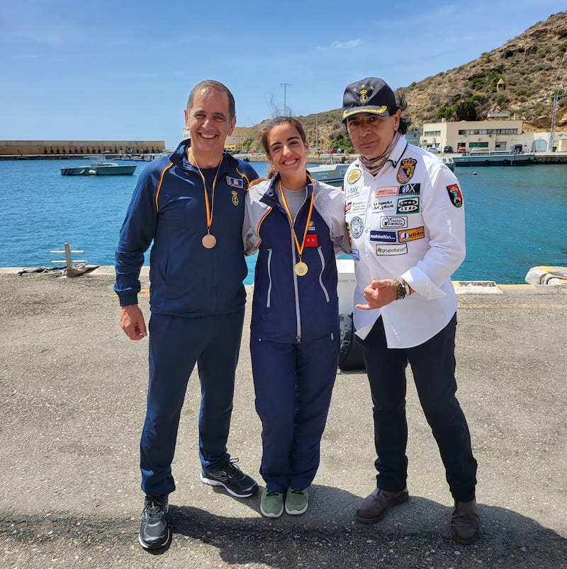 En la imagen inferior se observa a la ganadora con el comandante del CBA, capitán de Navío, José Seijo Casal, y Gaspar Zamora, 'speaker' de la prueba.