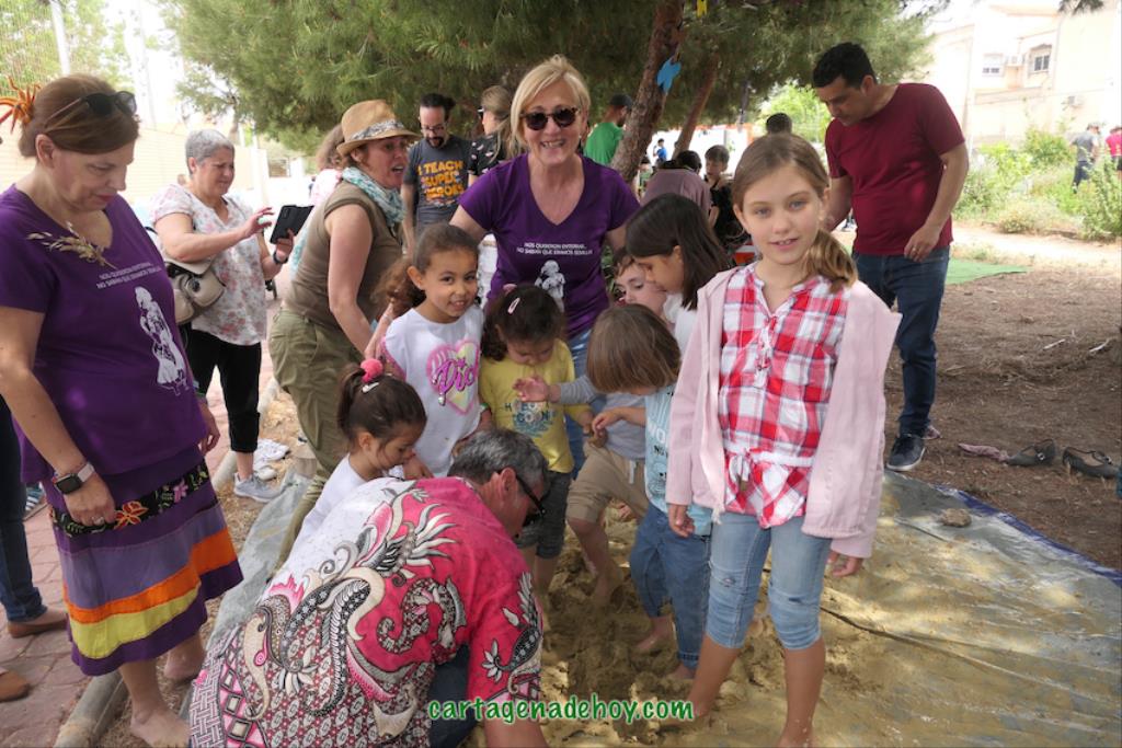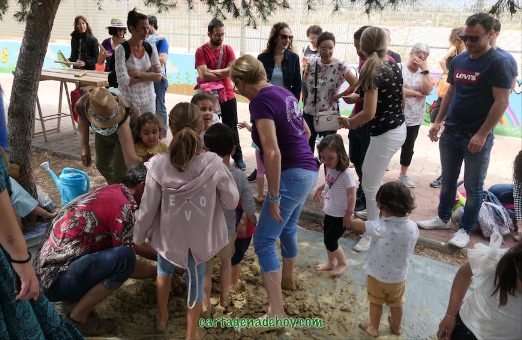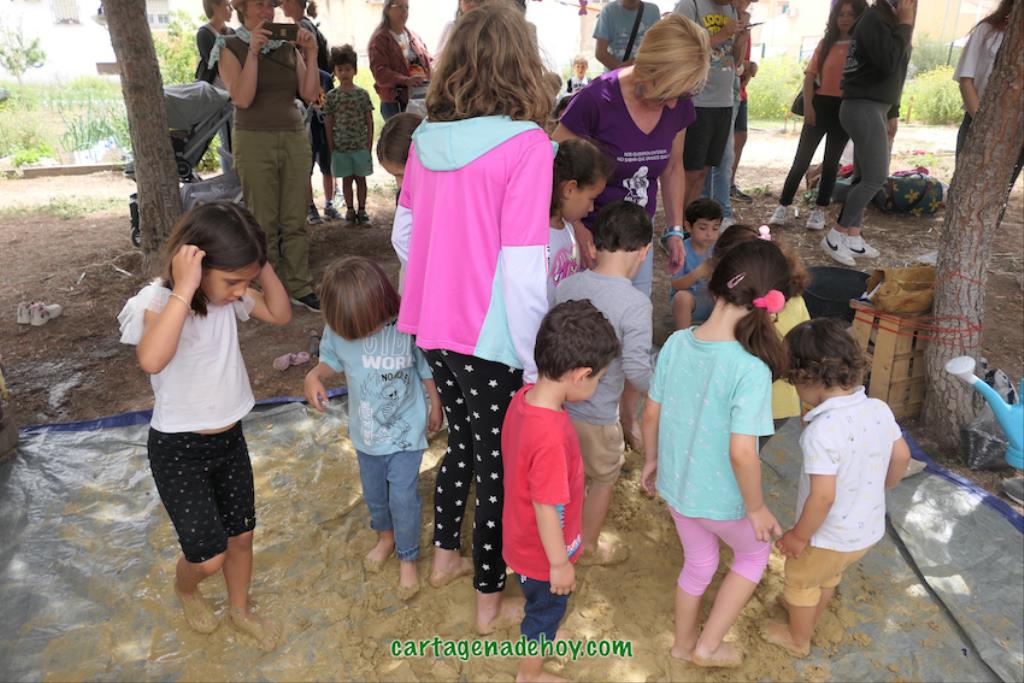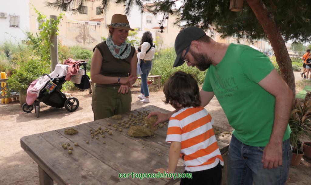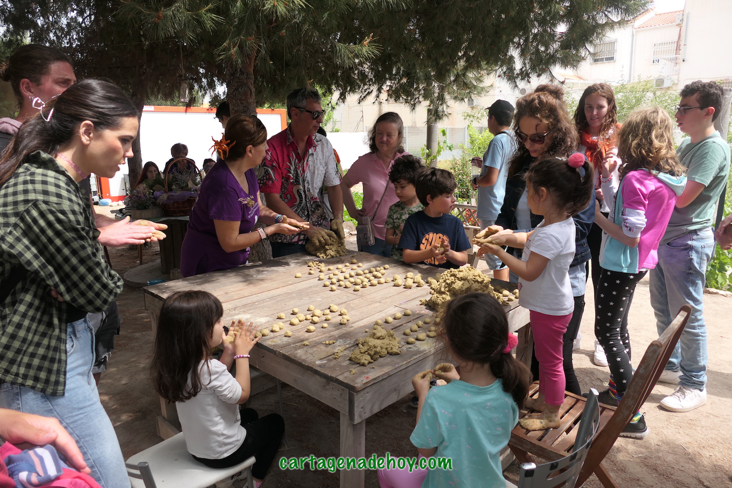 Dentro del recinto, se llevaron a cabo rutas guiadas, la creación de una parcela con agricultura natural, cuentacuentos, intercambio de semillas y el divertido de bolas de arcilla y semillas, en la que los chavales elaboraban la masa con sus pies. Después, con todo mezclado, se elaboraron bolas de arcilla y semillas que se plantaron.