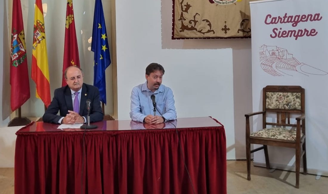 El cartagenero Santiago García, en un acto de la asociación cultural 'Cartagena siempre' que tuvo lugar en el Casino fue presentado por Tomás Martínez Pagán, habló de los relatos y leyendas que recogen sus obras publicadas sobre los camposantos de Cartagena, La Unión y Murcia.