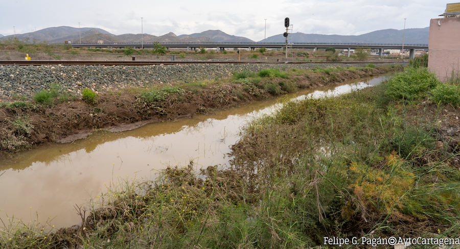 Tras las fuertes lluvias que cayeron en la madrugada del martes en Cartagena, los servicios municipales están trabajando para la vuelta a la normalidad, tanto en el casco urbano como en el litoral. A su vez, técnicos del consistorio y de la entidad ferroviaria han visitado la zona próxima al puente de Torreciega, donde el canal de drenaje de las vías del tren se rompió y provocó más daños, a los ya sufridos por los 120 litros por metro cuadro que llovió.