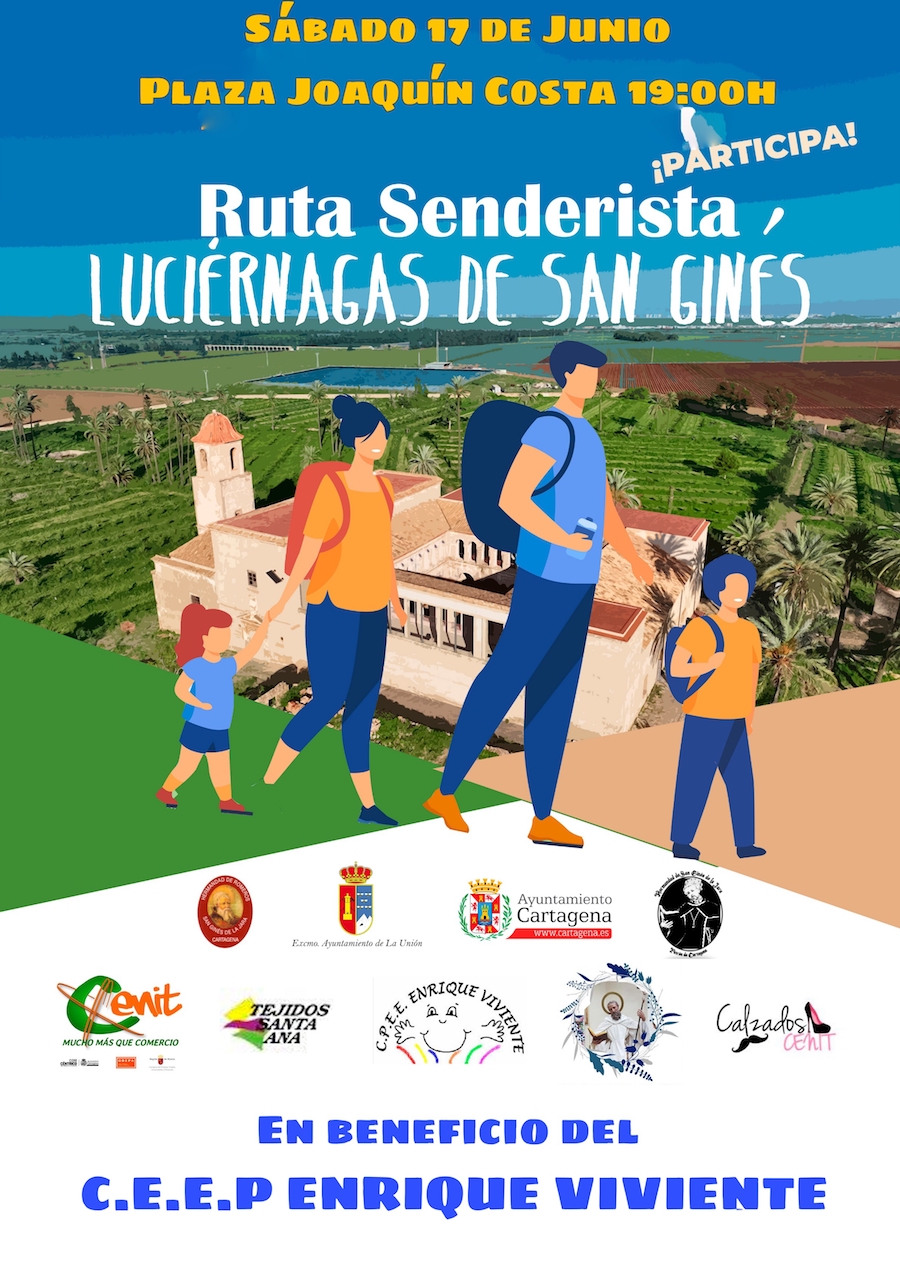 La tercera edición de la ruta benéfica 'Luciérnagas de San Ginés' se celebrará el 17 de junio con epicentro en la plaza de Joaquín Costa de La Unión donde a las 18.30 horas comenzarán las actividades en la explanada, donde habrá hinchables y monitores. A las 19 horas comenzará la prueba 'Gusanitos de luz' (menores de hasta 8 años de edad). Será una carrera circular por la explanada de un kilómetros. A las 19.30 horas será la salida de los participantes en ruta senderista con el mismo itinerario del pasado año, calculándose que durará unas tres horas y media. A las 22.30 horas habrá música y fiesta fin de carrera en la plaza, cerrándose la jornada a las 23.30 horas.