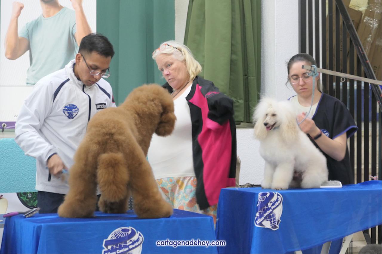 La primera jornada acogió una concentración caniche en la que la madrina del evento, María Eugenia Ribelles, fue la presentadora y la que ofreció, mientras los artistas de la tijera trabajaban el pelo de los perros, una serie de consejos para el buen cuidado del, para muchos, 'mejor amigo de las personas'. Así, por ejemplos, expuso el riesgo que tiene el animal si no le cortan bien las uñas, que no hay que comenzar lavándolo dándoles un enjuague de agua o, entre otros, que hay que evitar que la humedad permanezca en su pelo, el cual es vital para ellos debido a que su piel no transpira y el papel lo ejerce ese vello. Hay que apuntar que la labor de los peluqueros caninos va desde crear belleza o creatividad trabajando el pelo hasta los cuidados del animal, como es el baño. La segunda jornada acogió un concurso de belleza canina, que fue puntuable para el campeonato regional.