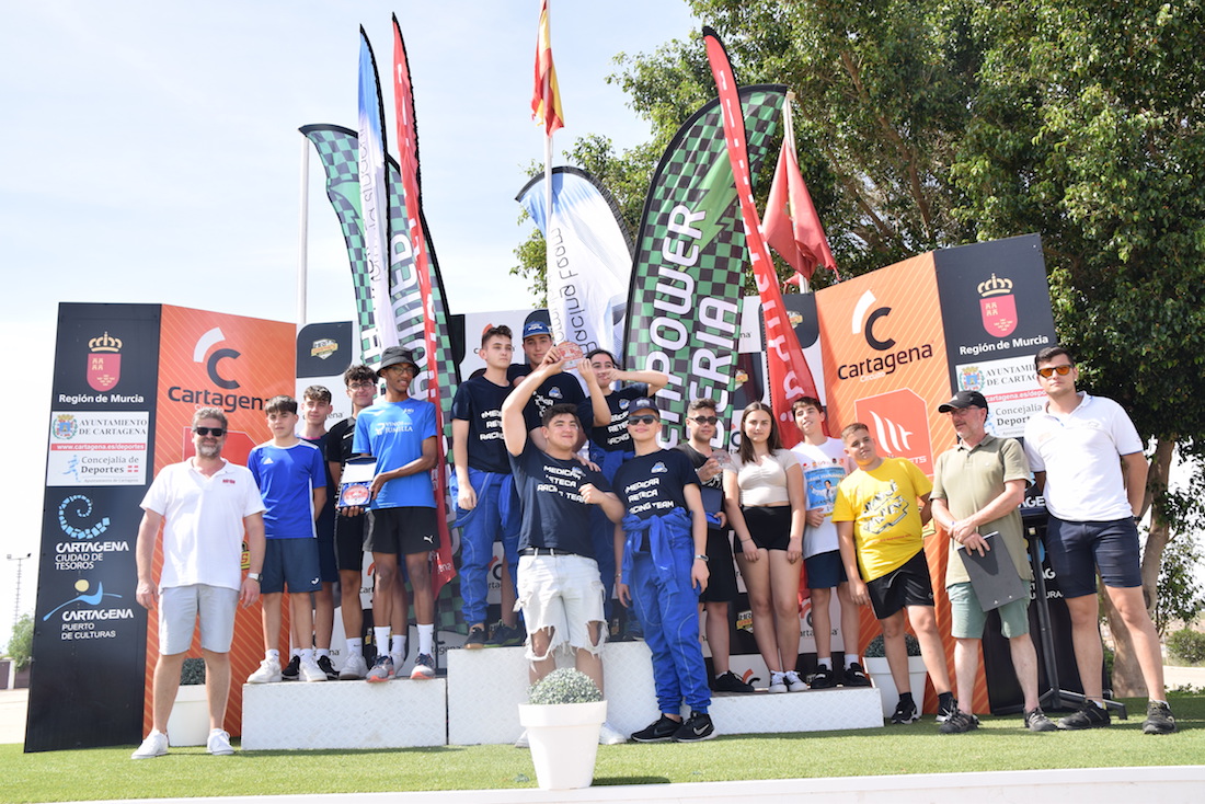 Los equipos del IES Mediterráneo, de Cartagena, y del IES Montesclaros, de Reinosa (Cantabria) han conseguido el primer y segundo puesto en carrera en las categorías F24 y F24+ en la competición Greenpower, celebrada en el Circuito de Cartagena este domingo.