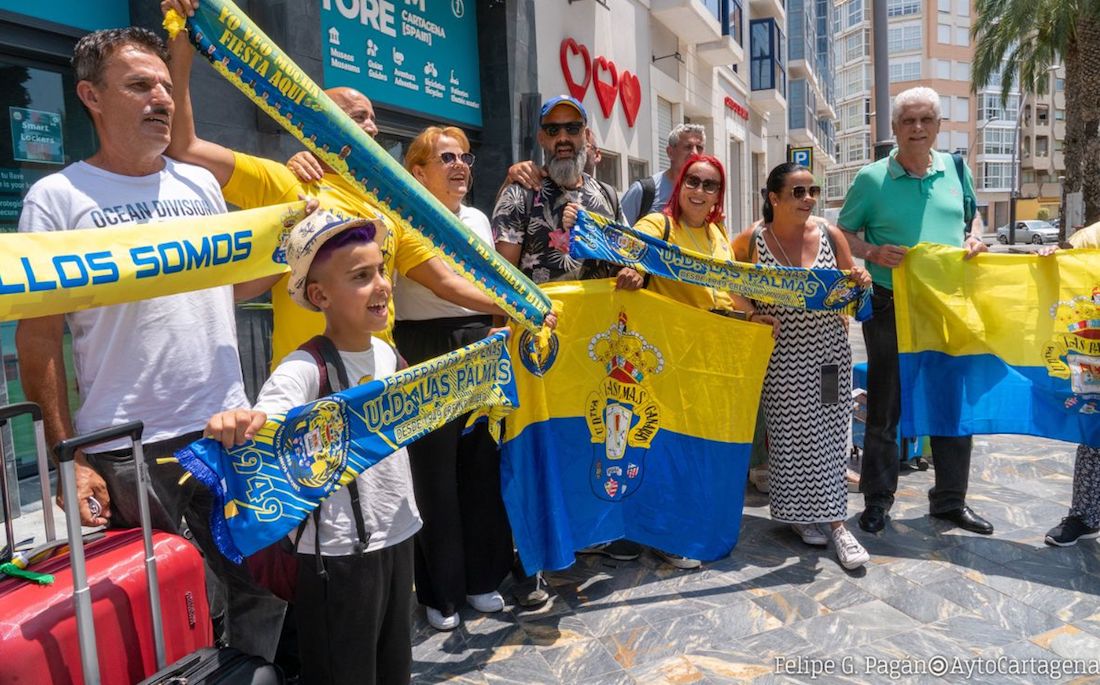Desde Canarias ha llegado esta mañana a Cartagena un autobús de la afición de la UD Las Palmas tras aterrizar su avión en la península. Durante los próximos días vendrán peñistas de 26 clubes de Primera y Segunda División de LaLiga. "En total están previstas unas 1.800 pernoctaciones en hoteles y apartamentos turísticos de Cartagena. También habrá unas 300 visitas a los diferentes yacimientos de Puerto de Culturas", ha explicado la edil delegada de Turismo, María Belén Romero.