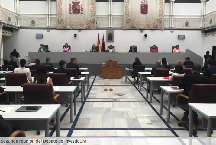 La Asamblea Regional de Murcia ha acogido, durante los días de ayer 6 de julio y hoy 7 de julio, la primera reunión del Debate de Investidura. Durante el día de ayer, el candidato a la Presidencia de la Comunidad Autónoma de la Murcia, Fernando López Miras, expuso su programa de gobierno y solicitó la confianza y aprobación de la Cámara.