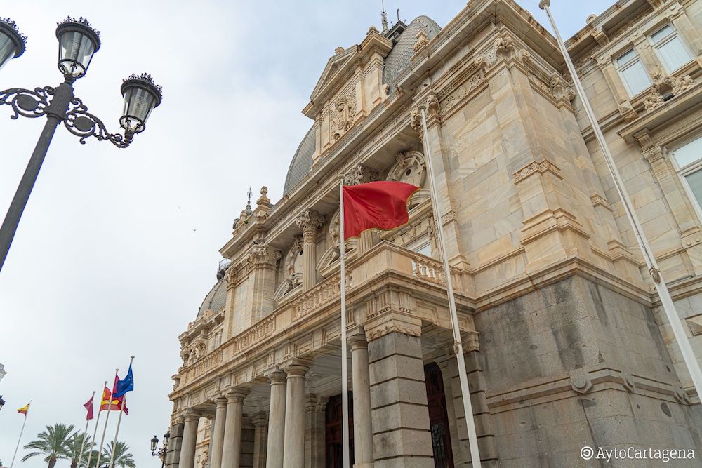 La enseña rojo cantonal se ha colocado en los mástiles no oficiales del Ayuntamiento, en los que por indicación de la Alcaldía se enarbolan otras banderas con ocasión de eventos de especial significación o conmemoraciones históricas, como es este caso.