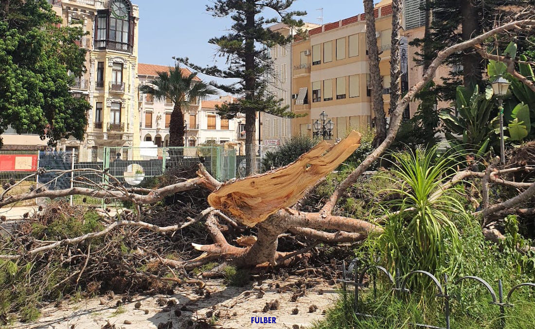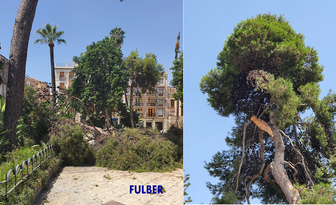 Escasos minutos antes de las doce y media de hoy se ha producido el desprendimiento de una rama desde más de diez metros de altura en la plaza de la Merced. Por fortuna, no hay que lamentar daños.